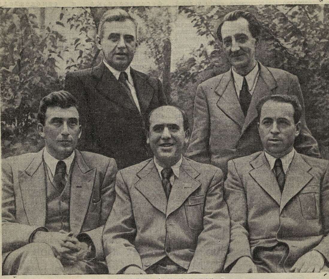 Слева направо: Л. Гуров, Б. Милютин, С. Няга, Н. Пономаренко, Д. Гершфельд
