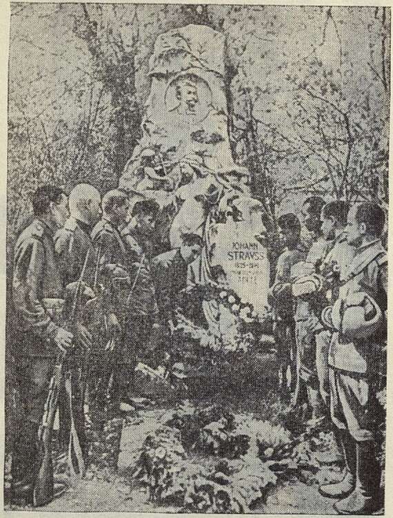 Советские бойцы возлагают венки на могилу Иоганна Штрауса (1945 г.)