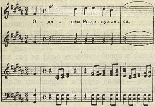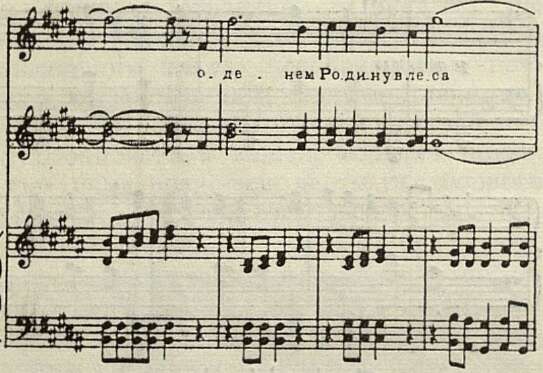 Стремление Шостаковича насытить язык мелодическими образами русской народной песни нашло свое выражение в ряде интонационных оборотов. Укажем хотя бы на следующую фразу из монолога певца: