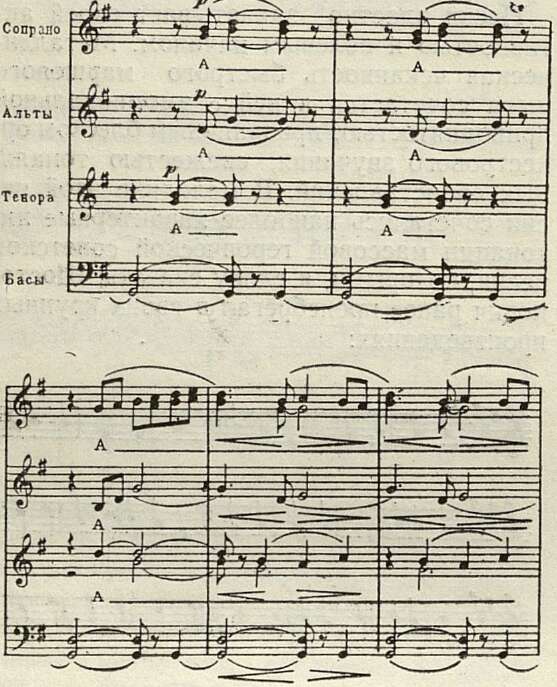 подлинной одухотворенности. Во внешне скромном сопровождении то здесь, то там заблестит яркая деталь, мягко и выпукло оттеняющая прозрачный лиризм музыки. Однако этот лиризм носит несколько условный, созерцательный характер, мало связанный с народной песенностью. Хочется также отметить глубоко поэтичное и проникновенно звучащее вступление (без слов), построенное на главной теме сочинения: