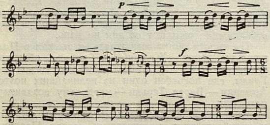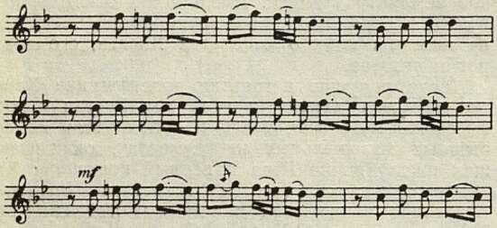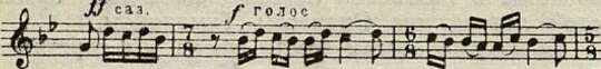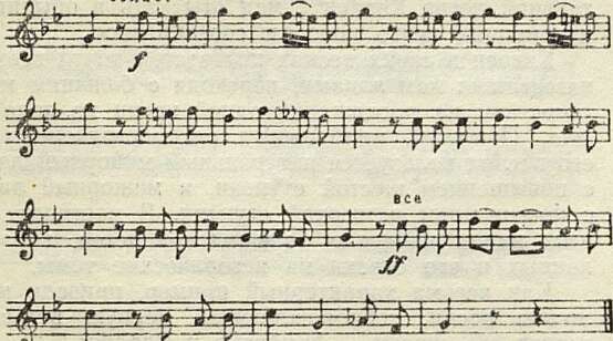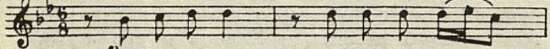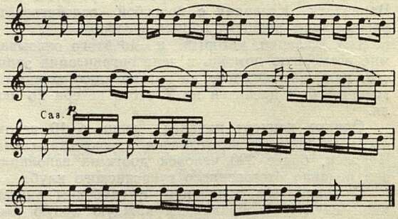 Как весьма характерный пример, приведу мелодию песни, сопровождающей первую встречу героев его сказки — Арменака и Варсик:
