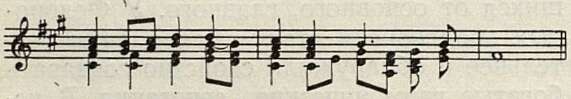 Сплошного четырехголосия здесь, как видим, нет — голоса идут и двух- и трехголосно, трижды сходясь в середине песни в унисон. Вместе с тем богато выявлена гармония песни. Задержание верхнего голоса умело используется для оживления нижних и средних голосов.