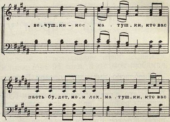 В этом отношении интересна старинная проголосная песня, распространенная во