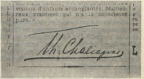 Страница из газеты «Matin» со статьей Ф. Шаляпина