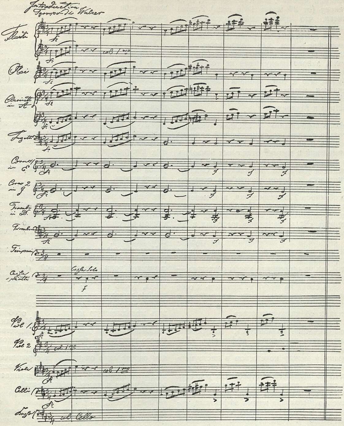 Здесь уже нет нарочитого подчеркивания танцевального ритма ударными инструментами и «остинатным» аккомпанементом струнной группы. В легком, поэтичном звучании оркестра свободно и широко раскрывается ясная, певучая лирическая мелодия.