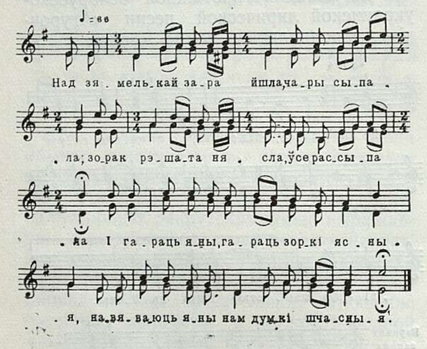 Такого рода песни сыграли в свое время значительную роль в национально-освободительной борьбе народа Западной Белоруссии. В новых песнях, созданных в освобожденных западных областях БССР, выражены великая радость народа, его благодарность Советской Армии-освободительнице и ее гениальному полководцу, товарищу Сталину.