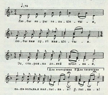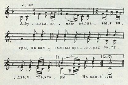 Приведенный пример свидетельствует о том, что современные песни белорусского народа часто создаются на русские тексты и исполняются на русском языке.