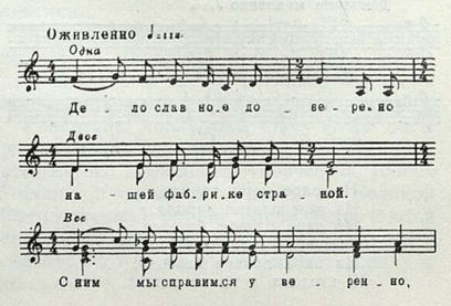 Первый опыт подзадорил девушек. Возникла мысль сложить новые песни о нашей замечательной советской действительности, захотелось испытать свои силы в создании не только музыки, но и слов песен. Работницы Мария Одинцова, Валя Князева, Валя Шаврина и знакомые уже нам подружки Громова и Дорохина