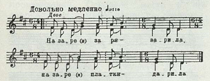 Действительно, курские частушки и «страданья» вполне заслуживают ту популярность, которую они стяжали себе в Красноармейске. В высшей степени своеобразные по мелодике, подголосочному складу и ритмическому строению (см. страданья «На заре заря зарила»), они особенно впечатляют в исполнении Громовой и Дорохиной. Подруги поют их внешне очень серьезно, но с большим внутренним юмором: