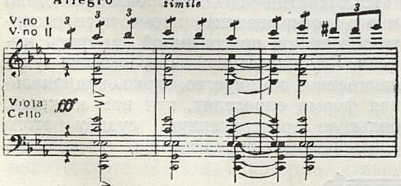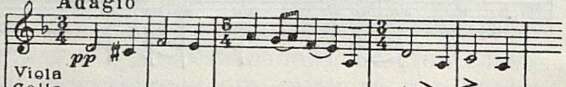 ный лиризм сочетается здесь с высоким драматическим пафосом. Как и первая часть, адажио начинается коротким вступлением — первая скрипка, альт и виолончель излагают в октаву скорбную, внутренне сосредоточенную мелодию: