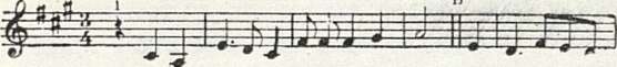 NB. При сочинении мелодий надо иметь ввиду, что слова тогда ясно слышны в голосе, когда другой голос исполняет пассажи на одном слоге.