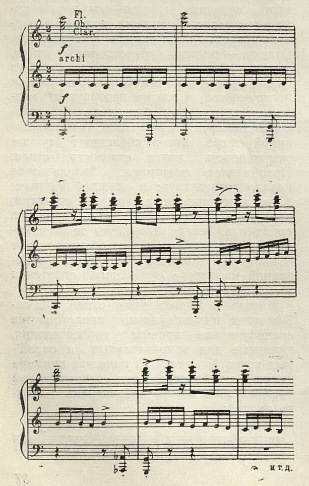 В средней части первого танца появляется вторая тема, еще более скупая по своему мелодическому рисунку: