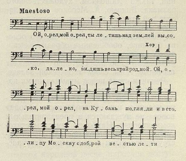 Мелодия ее близка бытовым украинским песням, широко распространенным на Кубани.