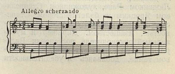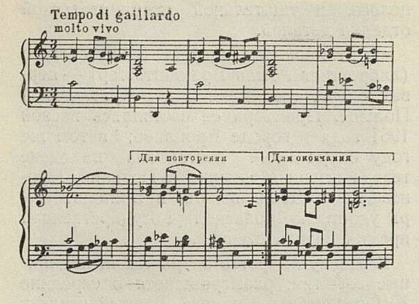 В дальнейшем, не теряя своего характерного рисунка, эта мелодия становится элементом более сложных музыкальных образов. Мы слышим ее в тревожной музыке сцены у короля, в энергичной «Вакхической песне» 4-го действия и во многих других эпизодах.