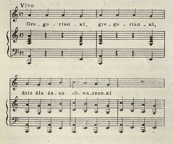 Добиваясь стильности, композитор сумел, однако, избежать мертвой стилизации. Хоры жаков эмоциональны, действенны, мелодика их тесно связана с живыми традициями польской народной музыки. Композитору удалось показать основной коллективный образ оперы в процессе развития. В первой картине (студенческий праздник на площади) главная лейттема жаков звучит как веселая хороводная песенка: