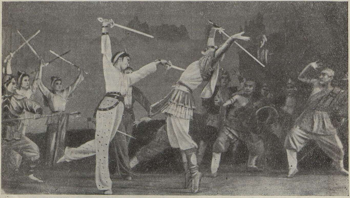 Интересно задуман и отлично исполнен — с внешним лаконизмом и большой внутренней силой — танец двух разведчиков («Восстание Союза мечей»), многочисленные сцены боя, насыщенные волевой динамикой и стойким мужеством.