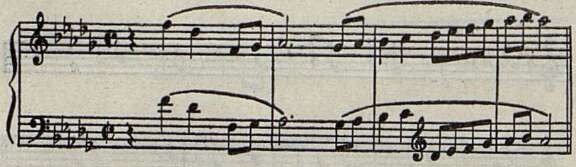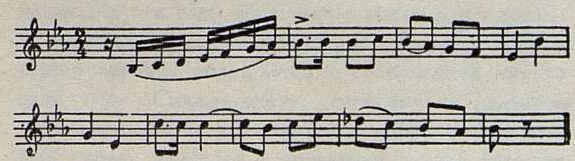 Мелодию ведут корнеты, «первые скрипки» духового оркестра при поддержке деревянных духовых инструментов.