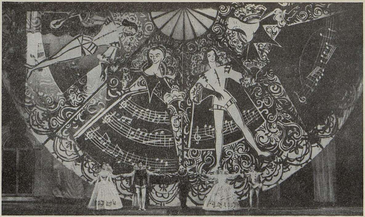 Много интересных находок в постановке (режиссер — А. Киреев). Весь спектакль пронизан карнавальным весельем. Еще до поднятия занавеса на просцениуме (действие идет на музыке вступления) разыгрывается своеобразная интермедия с участием меланхоличного Пьеро, забавников-шутов. Танцы масок в конце первого акта (балетмейстер — А. Гербек), выход их в третьей картине (набережная Севильи пробуждается после карнавальной ночи), хореографическое заключение финала — все это создает приподнятую праздничную атмосферу спектакля и, вопреки традициям камерного воплощения «Дуэньи» на театре, позволяет охватить увлекательным зрелищем большую сценическую площадку.