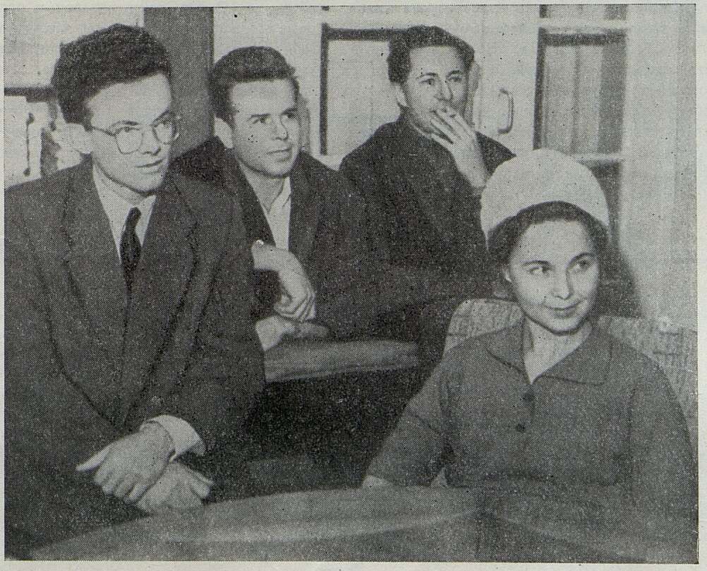В гостях у редакции побывала группа молодых композиторов. За круглым столом оживленно беседовали о насущных вопросах музыкального творчества и музыковедения А. Артемьев, С. Губайдуллина, Э. Денисов, Н. Каретников, М. Марутаев, Э. Оганесян, А. Пахмутова, А. Пирумов, М. Скорик, А. Шнитке, сотрудники редакции.