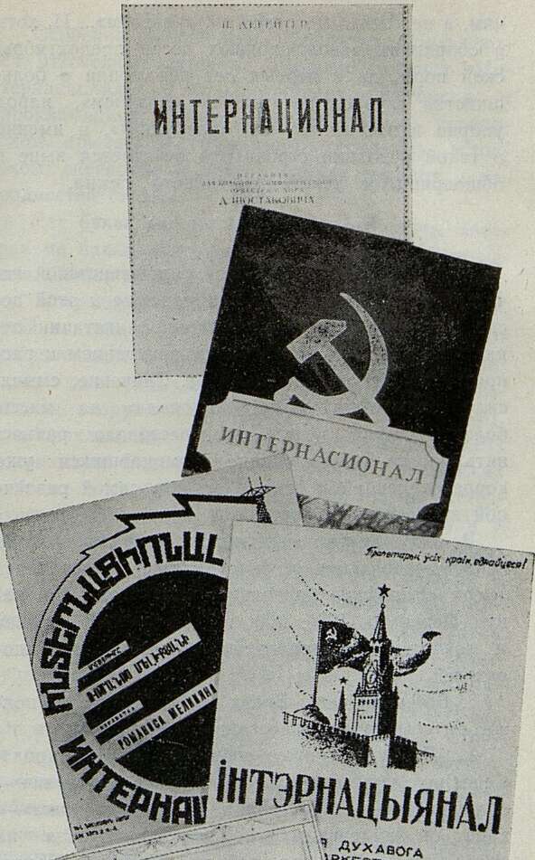 шанного хора), изданной ГИЗом в Москве в 1918 году, обозначено: «торжественно». То же «торжественно» — «maestoso» — закреплено и в монументальной обработке «Интернационала» Д. Шостаковичем для большого симфонического оркестра и хора (Музгиз, 1937).