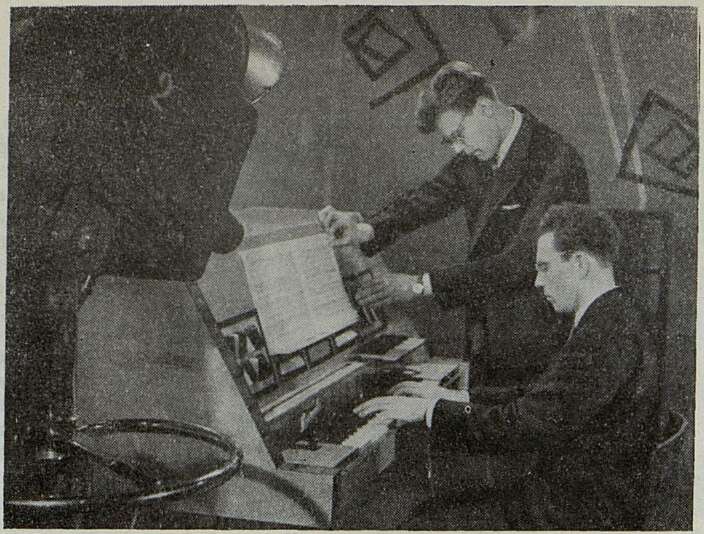 Органист Р. Уусвяли играет на вариоле. Рядом звукорежиссер X. Педусаар