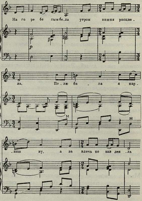 А какой тонкой мелодической и гармонической изобретательностью овеяна песня «На горе белым-бело» — одно из самых прекрасных и самобытных произведений Захарова!