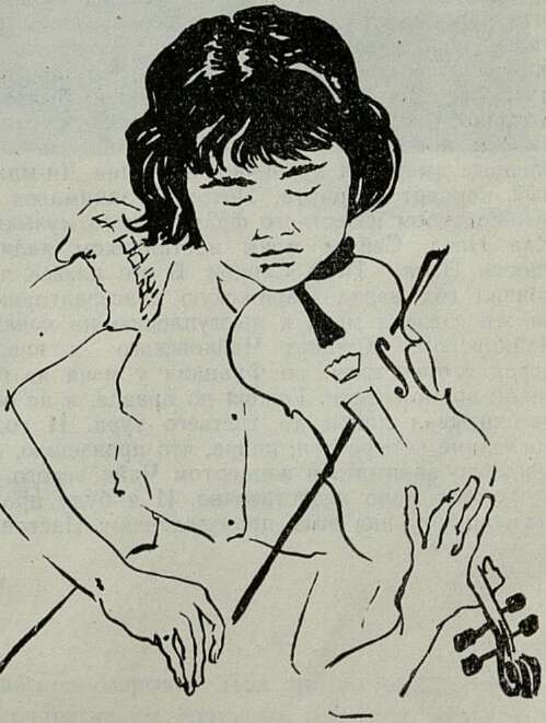 У нас в Японии знают и любят советских артистов. Я родилась в глухом местечке, где не было преподавателей, и первые уроки получила от своего отца, большого любителя музыки, по профессии фармацевта. Уже в четыре года я начала заниматься музыкой, а с восьми — живу и учусь в Токио. Здесь я слушала Ойстраха, Когана, Безродного, Ваймана, Школьникову и других советских артистов. Я очень многому научилась у них.
