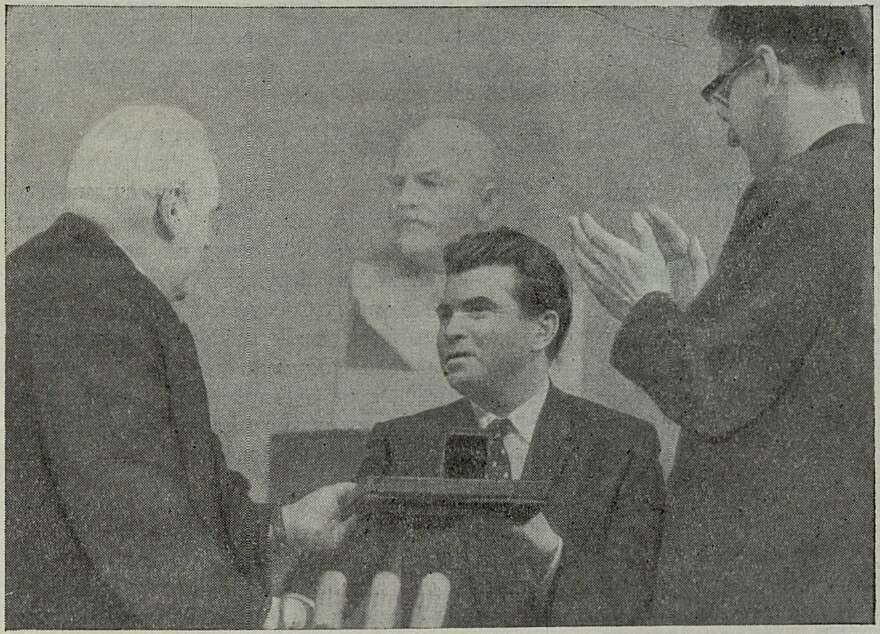 Н. Тихонов вручает Ленинскую премию Э. Гилельсу
