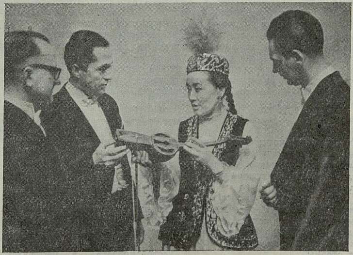 «Казах и латыш пожали в Риге друг другу руки, и песни о дружбе, казахские, латышские, русские, уже не умолкнут в Казахстане и Латвии», — так писал латвийский народный поэт Ян Судрабкалн о прошедшей недавно в республике неделе казахской культуры. Любители музыки в Риге и других городах познакомились с очень своеобразным искусством друзей из далекого. Казахстана, с его талантливыми артистами. Среди них Роза Джаманова, выступившая на сцене Латвийского оперного театра в заглавной роли «Чио-Чио-Сан» и в концертах, артистка Б. Тулегенова, прозванная за свой чудесный голос «казахским соловьем», искусный мастер игры на кобызе Ф. Балгаева, солист Казахского оперного театра А. Байтугаев и другие. С большим интересом слушали латыши симфонические произведения композиторов братского народа, чье профессиональное музыкальное искусство родилось и окрепло после Октябрьской революции.