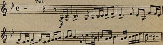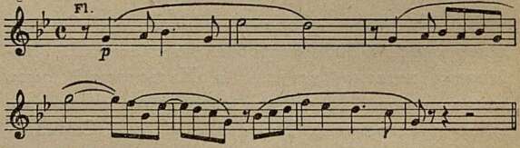 Постепенно она «выходит на первый план» и как бы отстраняет тему. В tutti оркестра напряженно звучит графически четкое двухголосие: медленно и упорно движутся вверх басы, раздаются возгласы струнных. Этот тоскливый и одновременно порывисто устремленный вперед образ вызывает к жизни энергичную тему главной партии.