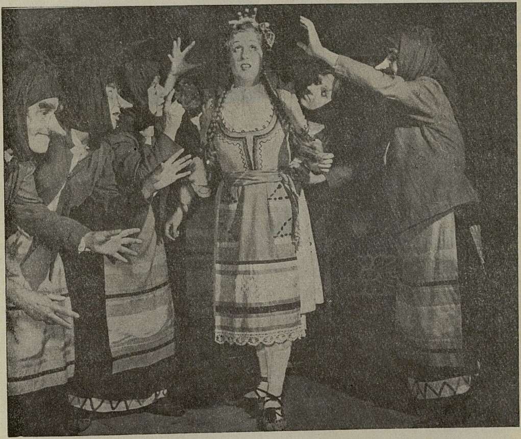 Талантливый драматург (а это ощущается буквально же с первых тактов оперы Хаджиева) в данном произведении еще несколько скован в развитии действия, несколько скуп на характеристики основных героев (молодой женщины Калины, ее мужа Радойко, ее отца и матери). История, когда-то случившаяся в старое время, интересует композитора не сама по себе, а лишь как канва для обрисовки сочных образов народной жизни, грустных или веселых комедийных сцен. Побочные персонажи значительно сильнее вдохновляют его остроумное живое перо: запоминается сцена знахарок, пытающихся заставить Калину заговорить (она дала матери обет молчания). Гротесково заостренные фигуры и гримы «баячек» (вместо одной режиссер их вводит семь!), деревенских сплетниц, и лекарок придают действию выпуклость, сценическую яркость. Но особенно хороша последняя картина — соревнование хитрого Петра с Ходжой Насреддином: кто из них заставит Калину заговорить? Конечно, выигрывает первый, а бахвал Ходжа с позором удаляется. Фигуры этих двух персонажей — длинного тощего Насреддина (Н. Хаджиев) и могучего Петра (И. Чифудов) — чрезвычайно удались исполнителям и режиссеру.