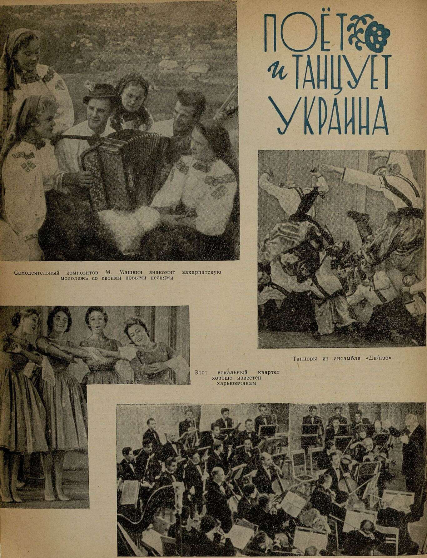 Украинская республика первой в Советском Союзе послала своих представителей на международный конкурс вокалистов в Тулузу. И что же? В 1958 и в 1959 годах наши посланцы: Г. Олейниченко, Е. Мирошниченко, Б. Руденко, В. Тимохин, А. Кикоть — завоевали первые места и своей победой приумножили славу всей советской вокальной школы.