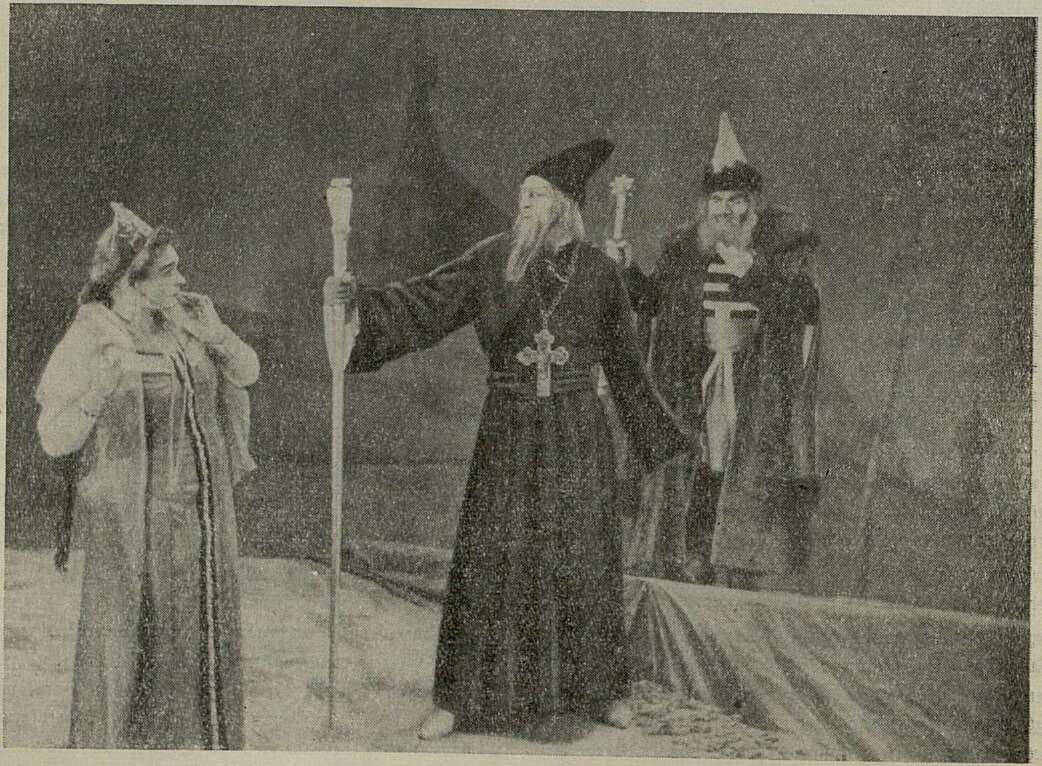 Все лучшее в оперных спектаклях воронежцев связано прежде всего с актерскими открытиями. Так, в «Царской невесте» Римского-Корсакова найдена новая глубина в основных женских образах. В драматическом образе Любаши актриса В. Рызванович вдруг неожиданно находит живые черты девичьей чистоты, человеческого достоинства, простоты, и это сразу лишает образ привычного штампа «оперной злодейки», которой руководят ревность, роковые и темные страсти. И, наоборот, в глубинной чистоте, казалось бы, покорной и безответной Марфы артистка Н. Шабанова обнаруживает цельность характера, гордость, скрытую, но ясно ощутимую духовную силу. Образы приобретают емкость, сложность. В драматической партии Любаши звучат теплые лирические ноты, а, казалось бы, сугубо лирическая партия Марфы обретает покоряющий внутренний драматизм. В раскрытии этих двух женских образов ярко звучит основная тема спектакля — тема жестокой, мрачной эпохи безудержного самовластия, безжалостно ломающей человеческие судьбы. Так же интересно и сложно построен характер Грязного (М. Слипченко). Образно вылеплен эпизод появления Грозного, в котором театрально и смело подчеркнута зловещая власть деспотизма. Но, пытаясь сломать привычные, надоевшие оперные формы, найти динамичность и остроту действия, режиссер В. Александрова приходит в противоречие с музыкальной образностью произведения. На сцене построен высокий станок, действие происходит на разных плоскостях, планшет изрезан сложными конструкциями. И эта подчеркнутая экспрессивность оформления приходит в явное противоречие с мудрой уравновешенной гармонией, стройностью и законченностью музыки Римского-Корсакова. Порывистость и обостренная динамичность мизансцен часто не совпадают с изумительной мелодичностью партитуры, а условность отдельных решений приводит к целому ряду психологических нелогичностей.