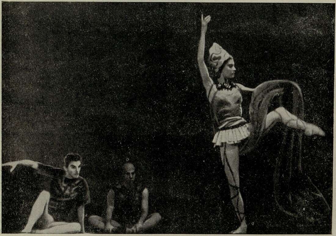 Но не будем ставить Баланчину в упрек, что его творческая практика порой бывает художественно прогрессивнее его теоретических высказываний, тем более, что он сделал все, чтобы разрушить впечатление от дуэта финалом балета, столь же трафаретным, как и его начало. На сцену снова выпорхнули кавалеры и дамы в юбках с какими-то странными хвостиками, потом появился злодей, который по всем правилам условной пантомимы стал объяснять хозяину дома, что в комнате Сомнамбулы мужчина; хозяин дома схватился за голову, погрозил в сторону правой кулисы, выхватил кинжал и побежал восстанав-