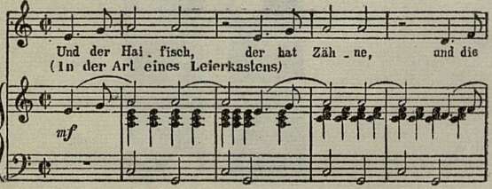 По всему свету бродит мелодия «Жестокого романса о Мэки Ноже», которым начинается пьеса Брехта — Вайля. Ее поет под звуки шарманки уличный певец: