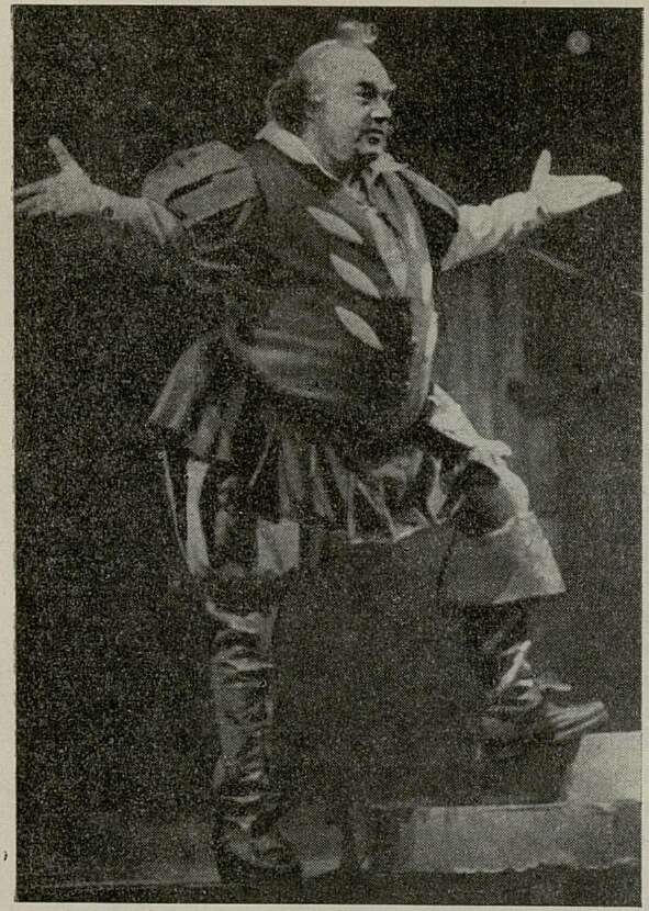 Около года мы терпеливо ждали его, надеялись и мечтали. А когда совсем было разуверились, тут он вдруг и явился, старый сэр Джон Фальстаф. Вышел на сцену Большого театра, уперся руками в бока и пропел знаменитый свой монолог о чести. Пропел он его двумя голосами — один раз голосом А. Ивашова, другой — голосом В. Нечипайло. При этом старый плут каждый раз в чем-то менялся внешне. Перед нами как бы являлись разные Фальстафы: один постарше и поуверенней, он хорошо знал сцену и зрителей, знал, как себя вести, чтобы их рассмешить; другой помоложе, покрепче, поплечистей и посильней, но не столь самонадеянный, а скорее, более лиричный, углубленный в свои раздумья (а их ведь у Фальстафа немало).