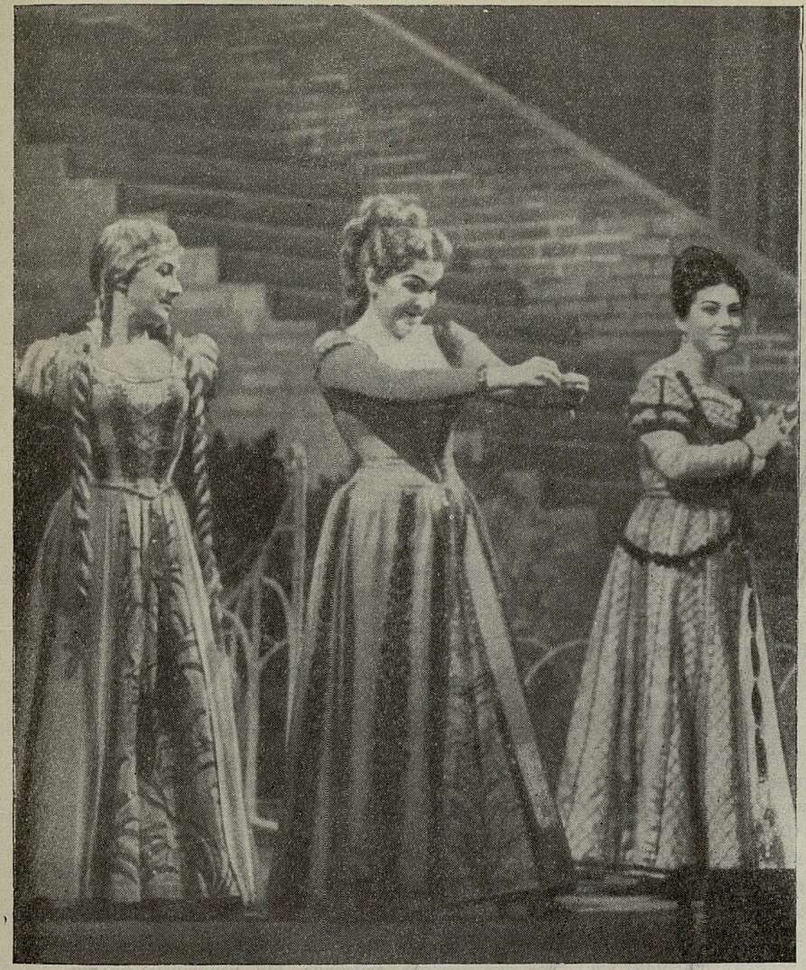 Эту изменчивую, вечно движущуюся, растущую природу звучания партитуры Верди хорошо раскрывает А. Мелик-Пашаев. Привлекая внимание слушателя к характерным деталям, изумительно точным в своей выразительности, он умело создает и большие нарастания, подводящие нас к значительным художественным обобщениям композитора-драматурга. И все же труд дирижера еще далеко не окончен: порой слишком «плотно» и тяжеловесно звучит оркестр, между ним и солистами еще нет того идеального ансамбля, который необходим при исполнении «Фальстафа».