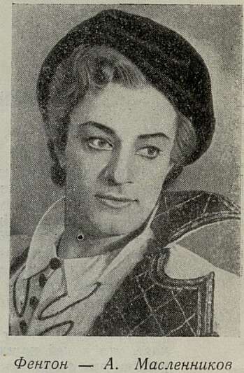 Лишь в некоторых случаях можно было явно предпочесть одного исполнителя роли другому. Так, в образе Наннетты Т. Сорокина живее, полнокровнее, нежели Г. Деомидова. Однако Т. Сорокина теряет чувство меры и излишне «оживляет» поведение своей героини. В партии Фентона А. Масленников продемонстрировал и мастерство владения вокальными красками, и красивый тембр голоса. Другой исполнитель этой роли, молодой певец Е. Райков, обладает хорошими вокальными данными.