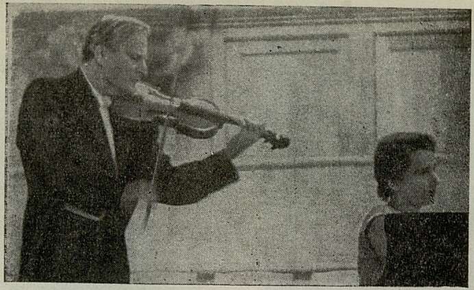 истине превзошел сам себя: возвышенное музицирование изобиловало неповторимыми творческими находками. Трудно сказать, что было лучше: Концерт Баха для скрипки и гобоя (партия гобоя — Е. Непало), превосходно прозвучавшая первая часть Ля-минорного концерта Баха, сыгранная «на бис», или Концерт ля мажор и вторая часть Коцертной симфонии ми бемоль мажор для скрипки и альта Моцарта. Затаив дыхание зал слушал эту симфонию, сыгранную Менухиным и Баршаем как задушевная беседа двух друзей.
