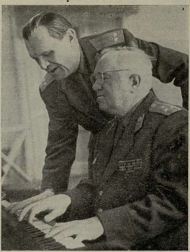 Руководитель Краснознаменного ансамбля Б. Александров и хормейстер К. Виноградов (см. стр. 146)