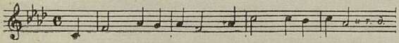 Так, например, тема вступления очень коротка; ее интонационное зерно — многократно повторяющаяся у литавр кварта ре—ля. На этот «тяжело шагающий» ритм литавр накладывается характерный рисунок тремолирующих виолончелей и барабана. Слышится не то стон, не то тягостный вздох, сопровождающий медленное монотонное «покачивание» кварт.