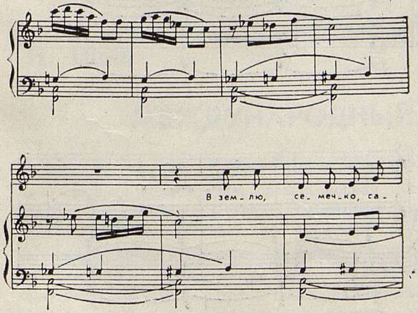 В опере широко претворен принцип повторности. О нем я хочу сказать специально, потому что такие его проявления, как репризность, рефренность, вариационность, играют в музыке для детей особую роль. Речь идет не только о конструктивном, но и о воспитательном значении повторности. Она облегчает запоминание и, следовательно, узнавание музыки. (Хорошее усвоение детьми сказок, между прочим, объясняется изобилием повторов, которые так характерны для этого жанра.)