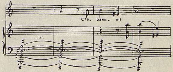 Контрастно по отношению ко всем остальным героям охарактеризован Ночной сторож, что вполне оправдано: сторож единственный в этой опере «взрослый» персонаж1. На протяжении сочинения он появляется несколько раз, участвует в действии (например, берется судить бой между Перчаткой и Сенькой Единицей). Не лишенная: остроты, но чем-то старомодно уютная, основная; музыкальная тема Ночного сторожа рисует его чудаковатый образ: