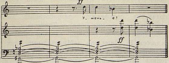 Обратим еще внимание на сказочный по своему звучанию лейтмотив «лодыреискателя» (также двузвучный), с которым интонационно связан «механический», нарочито простенький вальс (с челестой).