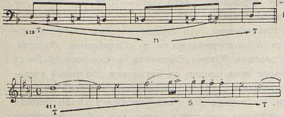 В Скерцо иная картина. Если крайние его части включают варьирование лишь того «рассеянного» типа, который встречался в Аллегро (ср. такты 77–84 и 85–92, 93–96 и 97–100 и т. д.), то в трио с его песенной русской темой вариации уже вполне отчетливы, в них сосредоточено все развитие народного по характеру образа, светлого, отчасти пасторального, как бы на расстоянии отвечающего трагическому остинато первой части. Так ознаменовано начало перелома в общем содержании симфонии.