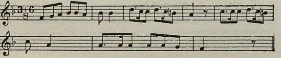 1 Характерно, что звукоряд следующей видалы, внешне близкий к фа мажору, в действительности тяготеет к минору. При гитарном аккомпанементе, дающем гармоническую опору, и особенно при исполнении напева параллельными терциями появляется нижиий подголосок с ярко выраженной окраской ре минора.