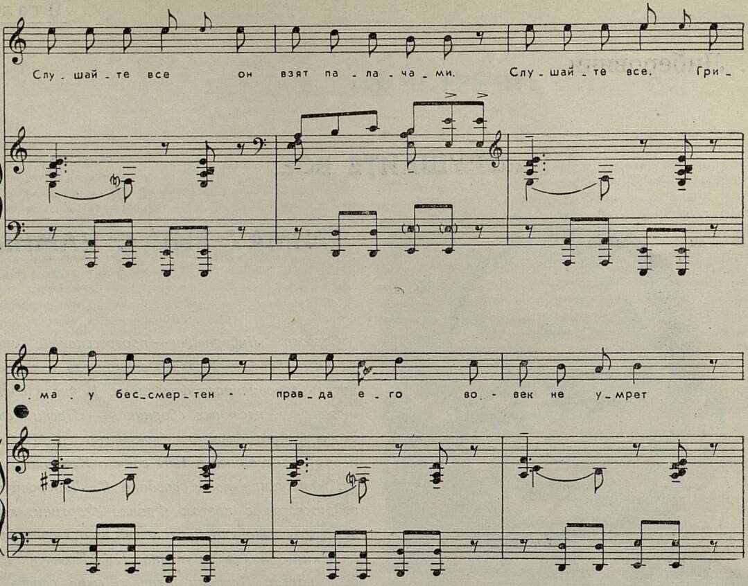 Публикуемая песня создана С. Либеровичи в содружестве с поэтом Франко Фортини, когда было получено скорбное известие о казни франкистскими палачами члена ЦК Коммунистической партии Испании, верного сына своего народа Хулиана Гримау.