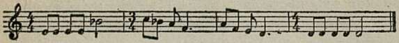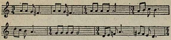Немало в румынском фольклоре и разнообразных плясовых мелодий. Самыми характерными из них являются хороводные и колонные типа «Брыу» и «Рустем», но в Трансильвании, например, распространены и парные пляски. Плясовые мелодии не знают трехдольных метров, большинство их сложено в двухдольных размерах, но зато имеются многочисленные танцевальные наигрыши, основанные на оригинальных ритмических формулах, как, например, «Аксак» — одна из наиболее типичных в румынском фольклоре; она объединяет три длительности — две восьмых и одну восьмую с точкой при размере 7/16. Не менее своеобразна и ритмическая основа следующего плясового наигрыша: