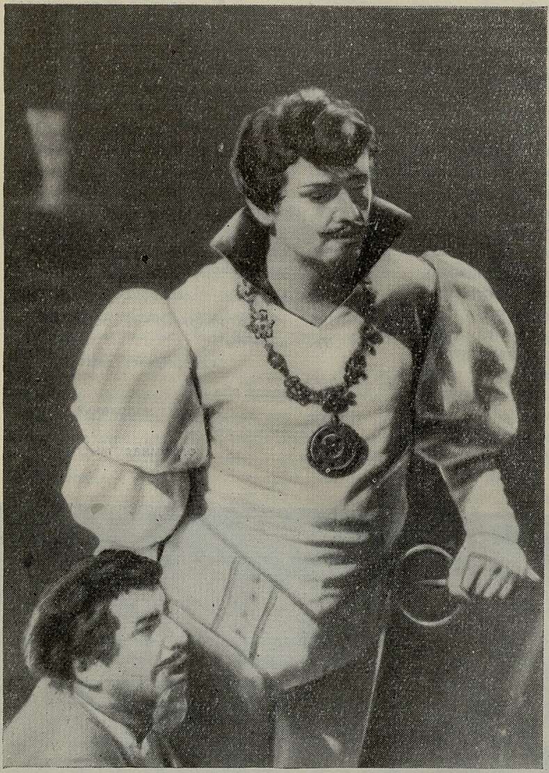 Никакого парада, никакой бутафорской слащавости. Портрет Ильича простой, сурово-будничный. Скульптурные группы — «барельефы», но и в них эффектная символичность одних, напряженно застывших фигур уравновешивается другими, словно только сейчас вышедшими из толпы созидающих, дерзающих, борющихся. Мы потому подробно останавливаемся на внешней, сценической культуре постановки, что в Новосибирском театре стали на правильную точку зрения: здесь понимают, что только строгий лаконизм оформления дает возможность полностью сосредоточить внимание на музыке, на действии.
