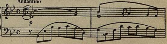 Весь экспозиционный материал «Песни» развертывается очень органично, естественно и непрерывно, образуя один большой 18-титактный период. В самом этом периоде при исполнении часто объединяют первые двутакты в одну распевную фразу. Но подобная трактовка противоречит намерениям автора, который в каждом такте не случайно подчеркнул лигами начальный ниспадающий мотив. Выделив его, исполнитель тем самым отметит такую важную жанровую особенность, как вариационный характер мелодии, основанной на развитии начального интонационного зерна.